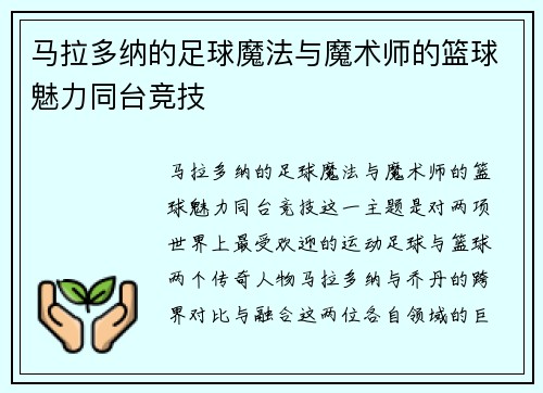 文章摘要:魔术师约翰逊,无论是在球场上还是退役后的生活,都是篮球历史上不可磨灭的传奇人物。他不仅以卓越的球技、视野与领导力赢得了无数荣誉,还对篮球的发展和全球化产生了深远影响。本文将详细阐述魔术师约翰逊再度登场的背后原因,并探讨他如何通过再度回归篮球世界,继续书写辉煌篇章。从他退役后的影响力到复出的...
